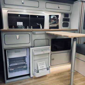 We have taken the opportunity to make improvements on the newest VW model including additional hidden storage, an upgraded bed and extra mod cons such as a microwave, fridge, night heater, awning rail, solar power and hob as standard. This style campervan includes everything you'll ever need to set off on your next adventure. The ultimate mixture of style, luxury and convenience.